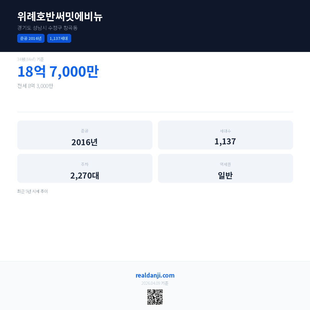 위례호반써밋에비뉴 최근 거래가는 18억 7,000만입니다. (2026-03)