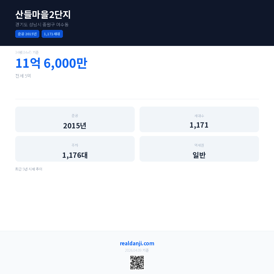 산들마을2단지은(는) 2015년에 준공되었으며, 현재 11년차입니다. 총 1,171세대 규모입니다.