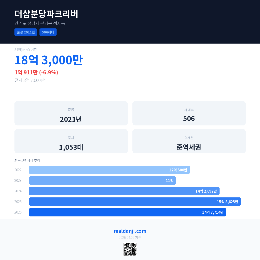 더샵분당파크리버 최근 거래가는 18억 3,000만입니다. (2026-03)