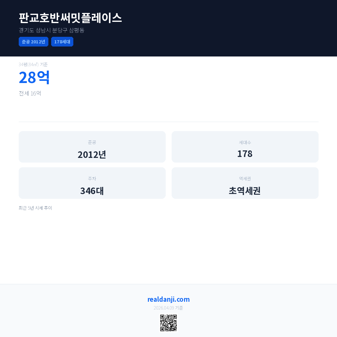판교호반써밋플레이스 최근 거래가는 28억입니다. (2025-10)