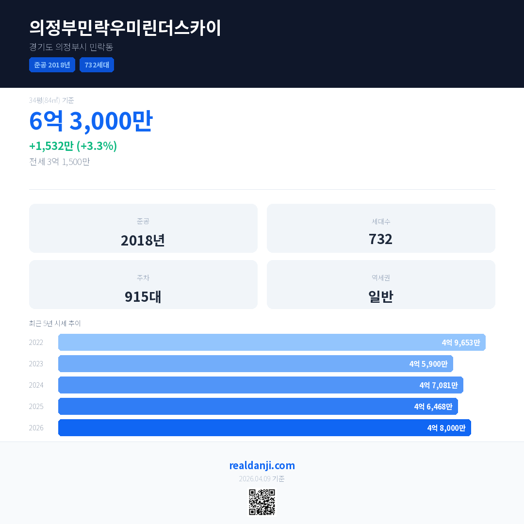 의정부민락우미린더스카이 최근 거래가는 6억 3,000만입니다. (2026-03)