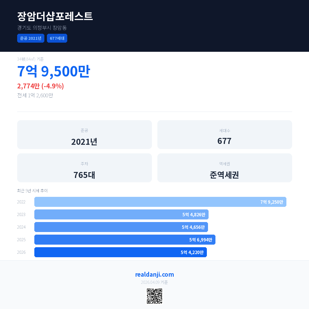 장암더샵포레스트 최근 거래가는 7억 9,500만입니다. (2026-03)