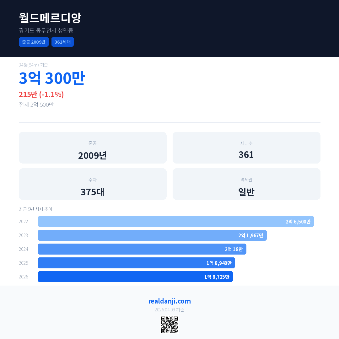 월드메르디앙 최근 거래가는 3억 300만입니다. (2026-03)