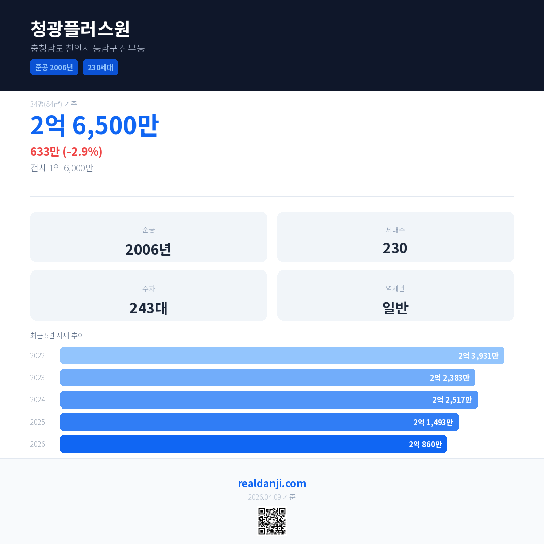 청광플러스원 최근 거래가는 2억 6,500만입니다. (2026-04)