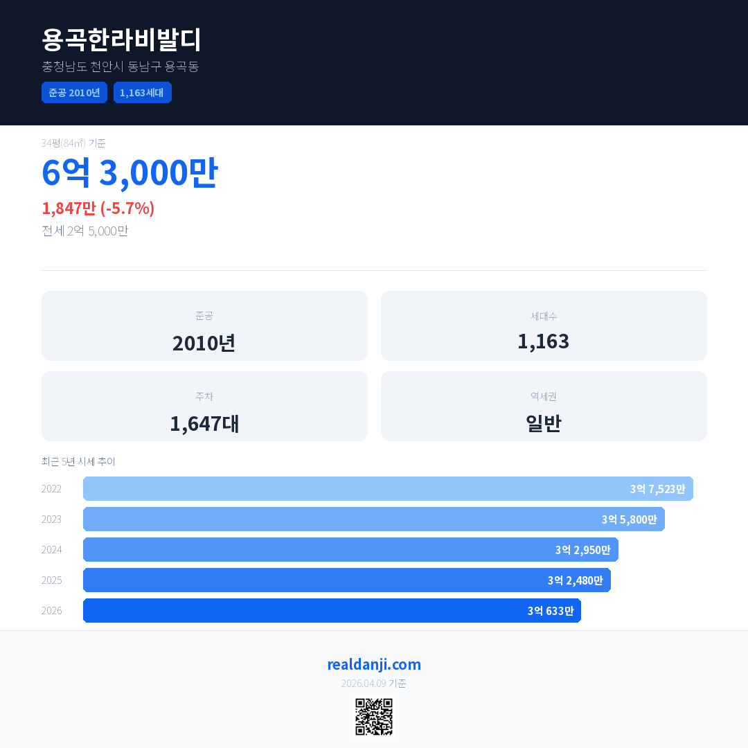 용곡한라비발디 최근 거래가는 6억 3,000만입니다. (2026-04)