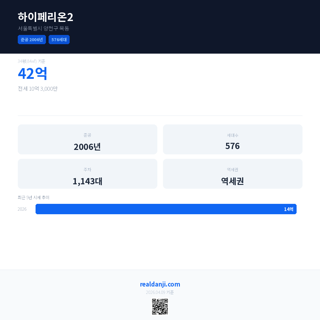 하이페리온2 국민평형 기준 2026년 평균 거래가는 14억으로, 전년 대비 144.2% 상승 했습니다.
