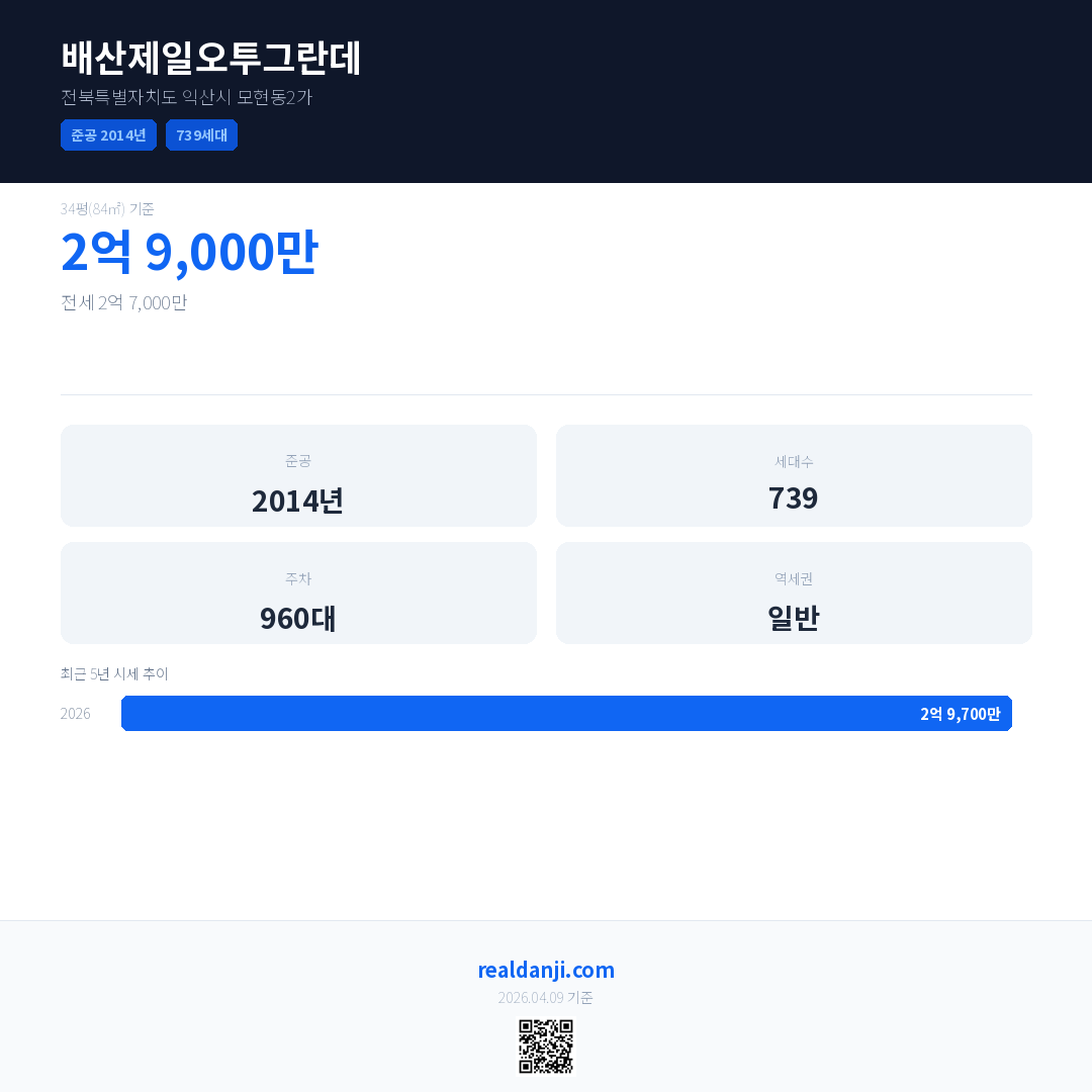 배산제일오투그란데 최근 거래가는 4억 3,200만입니다. (2026-04)