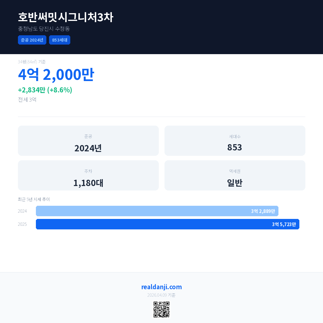 호반써밋시그니처3차 최근 거래가는 4억 2,000만입니다. (2025-12)