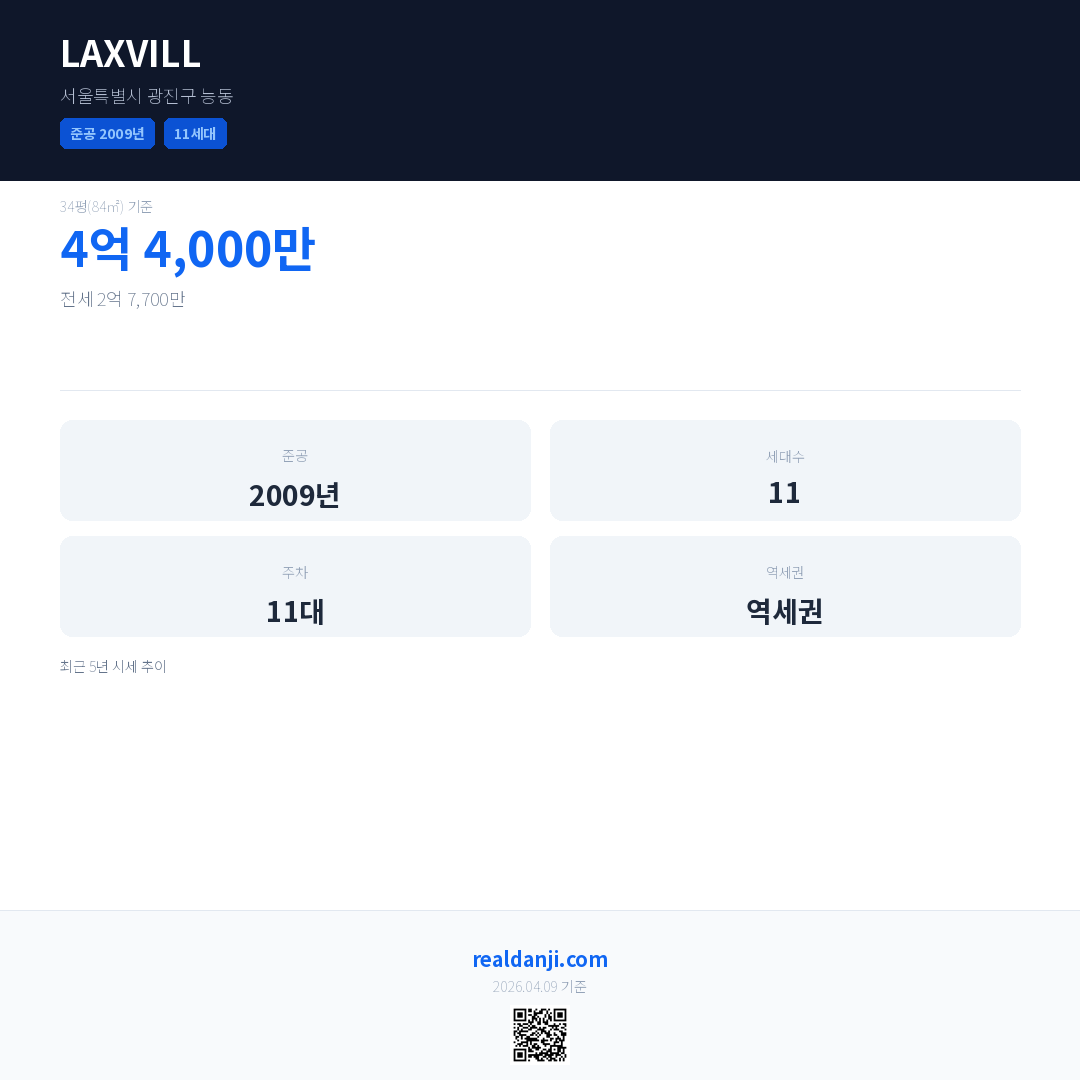 LAXVILL은(는) 2009년에 준공되었으며, 현재 17년차입니다. 총 11세대 규모입니다.