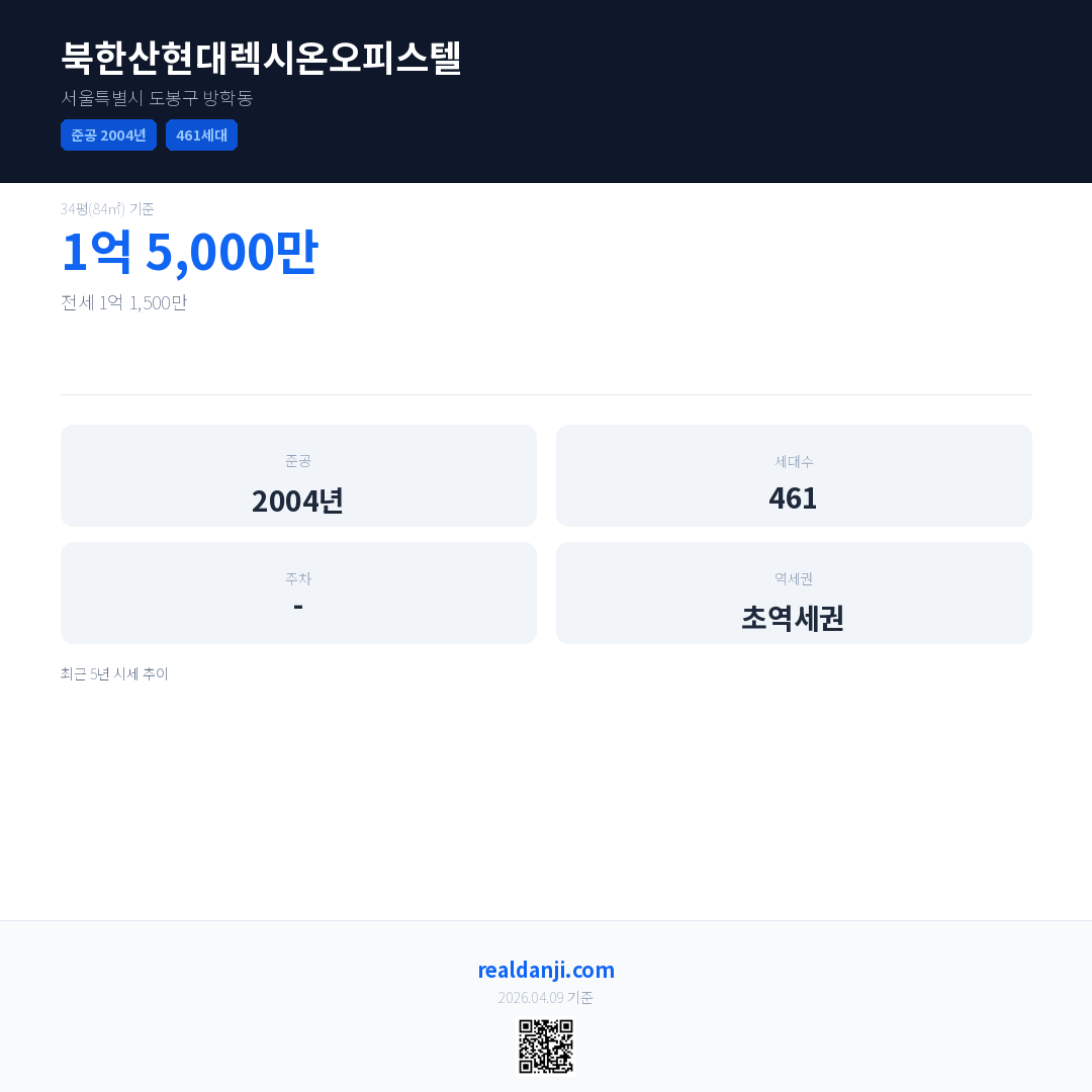 북한산현대렉시온오피스텔 최근 거래가는 1억 5,500만입니다. (2026-03)
