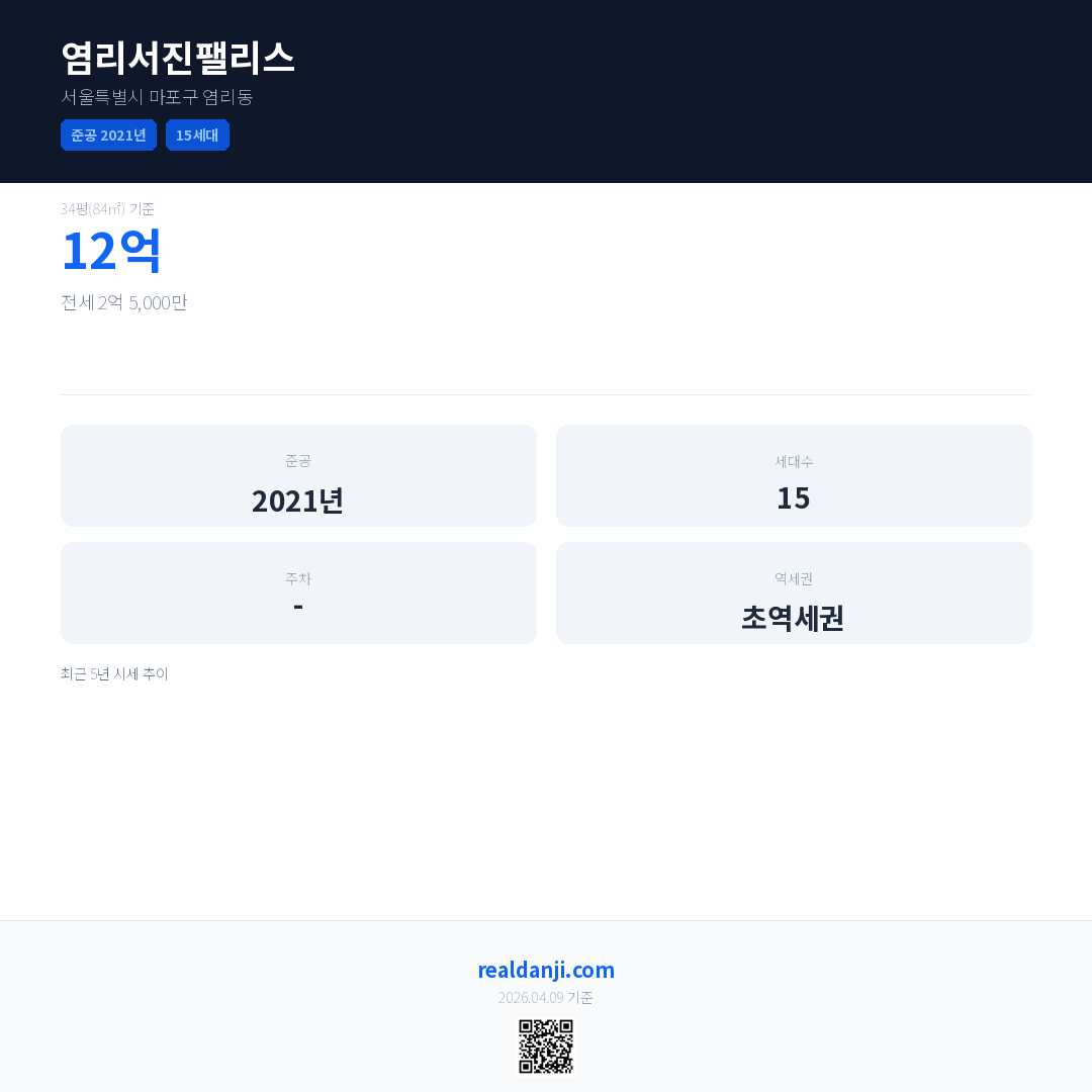 염리서진팰리스은(는) 2021년에 준공되었으며, 현재 5년차입니다. 총 15세대 규모입니다.