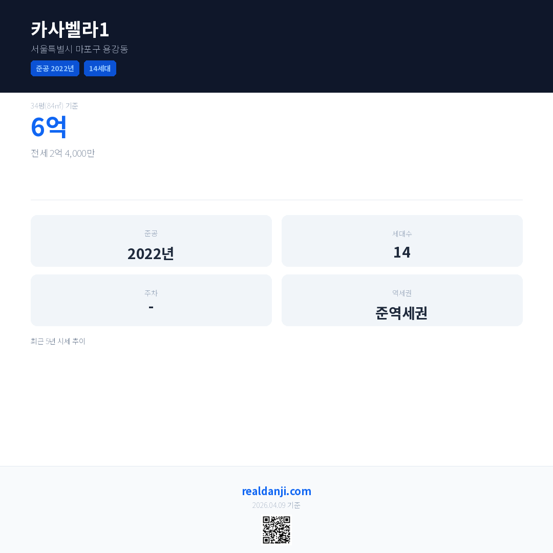 카사벨라1 최근 거래가는 6억입니다. (2025-12)