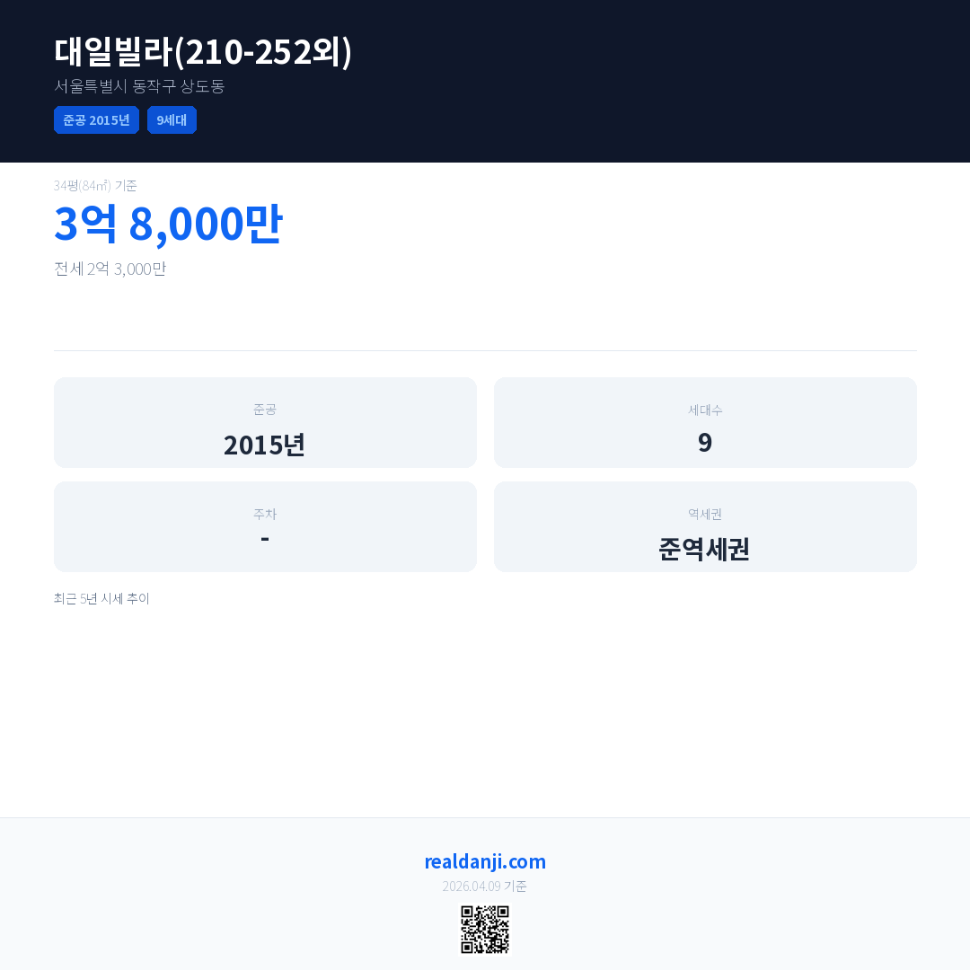 대일빌라(210-252외) 최근 거래가는 3억 8,000만입니다. (2026-04)