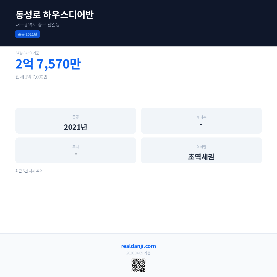 동성로 하우스디어반 최근 거래가는 1억 2,000만입니다. (2026-04)