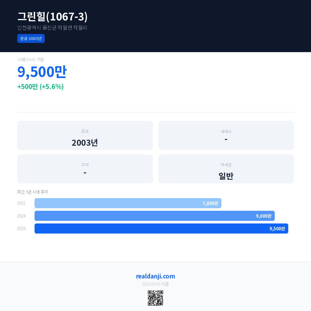그린힐(1067-3) 최근 거래가는 9,500만입니다. (2026-03)