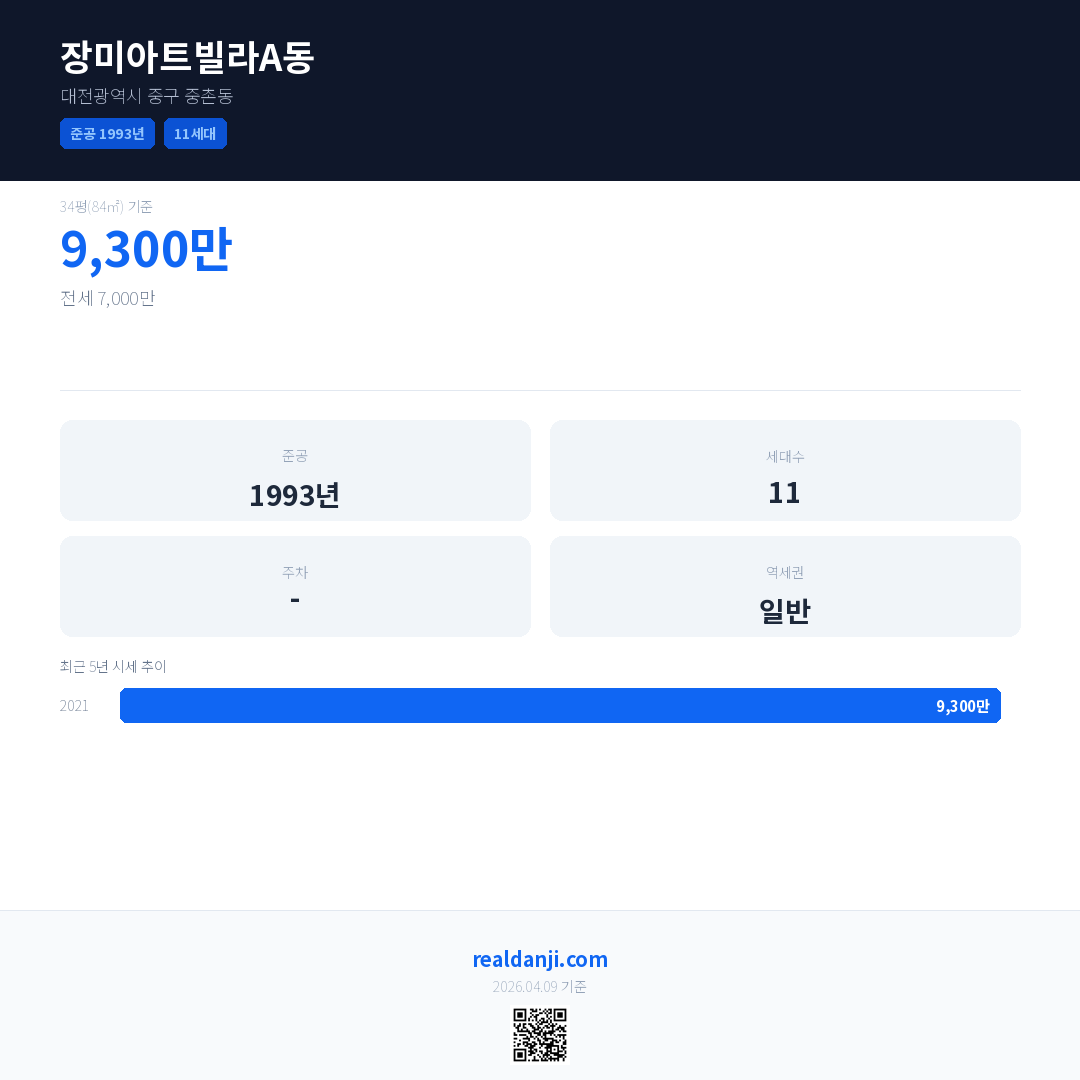 장미아트빌라A동 최근 거래가는 9,300만입니다. (2026-02)