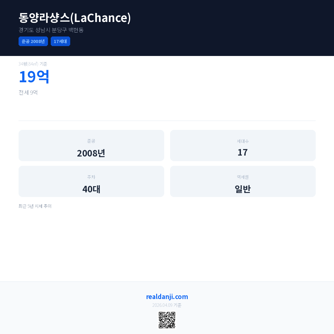 동양라샹스(LaChance) 최근 거래가는 19억입니다. (2026-02)