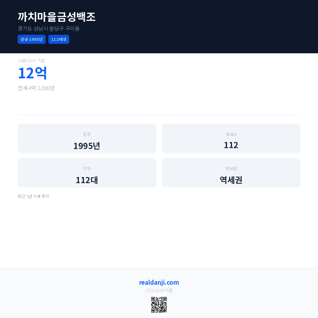 까치마을금성백조 최근 거래가는 12억입니다. (2025-09)