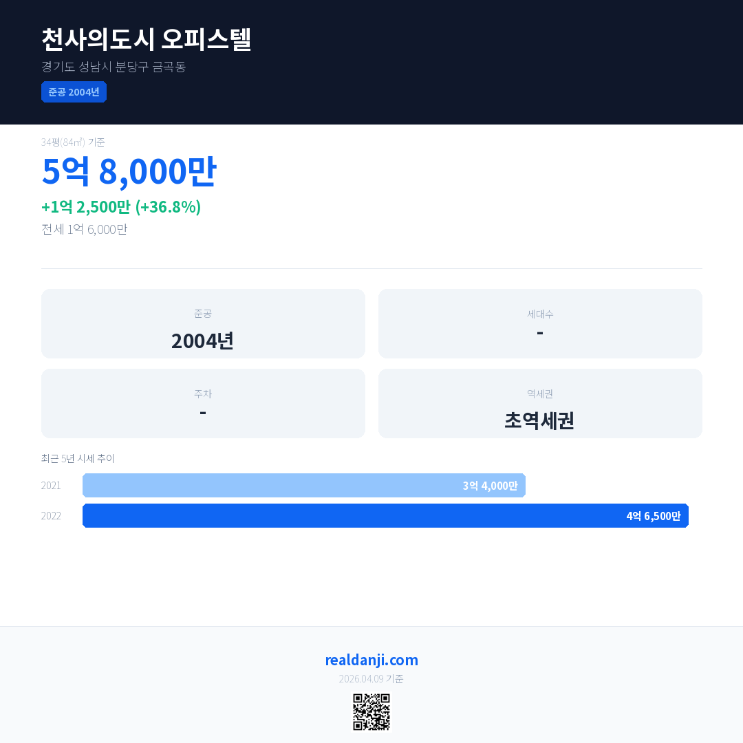 천사의도시 오피스텔은(는) 2004년에 준공되었으며, 현재 22년차입니다.