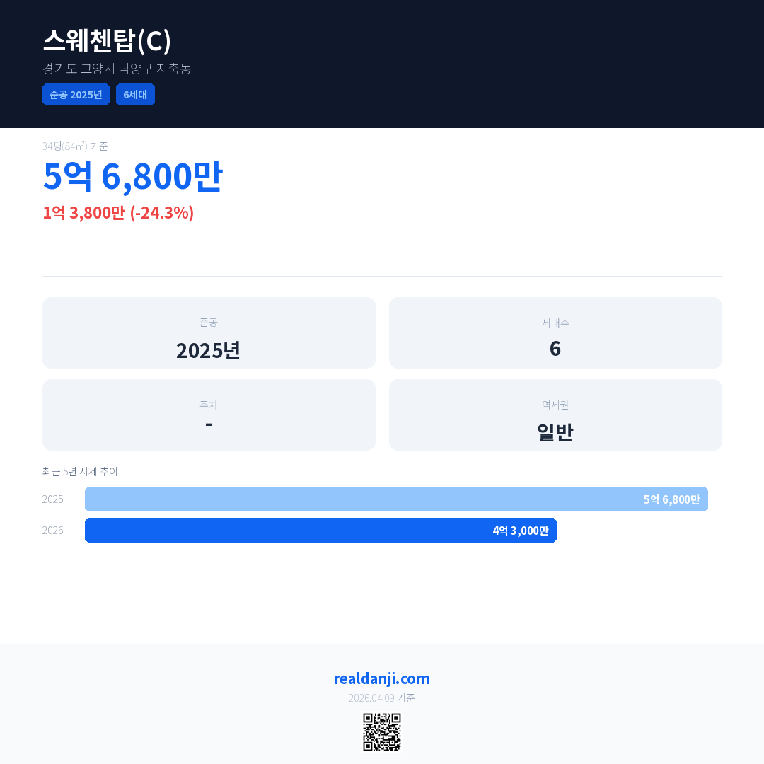 스웨첸탑(C) 최근 거래가는 5억 6,800만입니다. (2026-03)