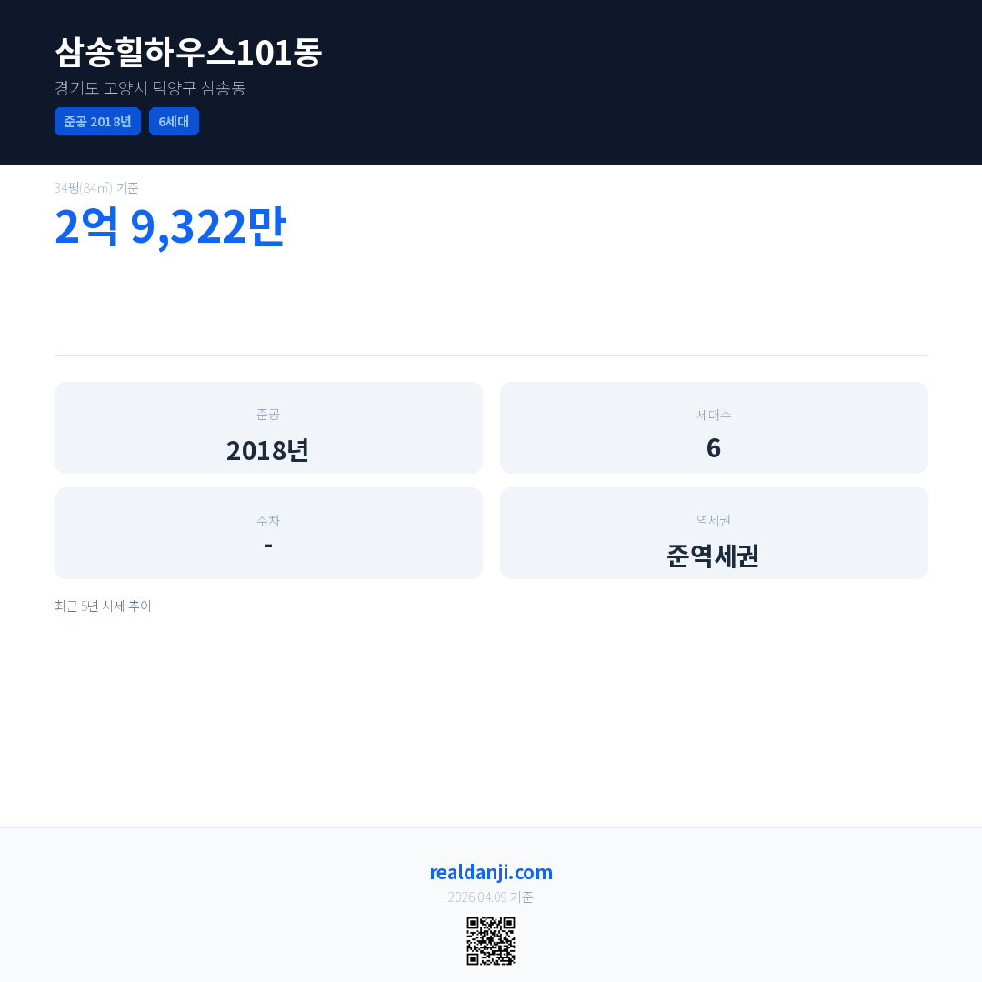 삼송힐하우스101동 최근 거래가는 2억 9,322만입니다. (2019-03)