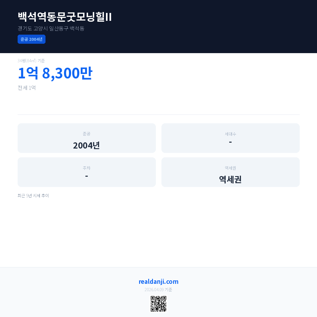 백석역동문굿모닝힐II 최근 거래가는 1억 8,300만입니다. (2026-03)