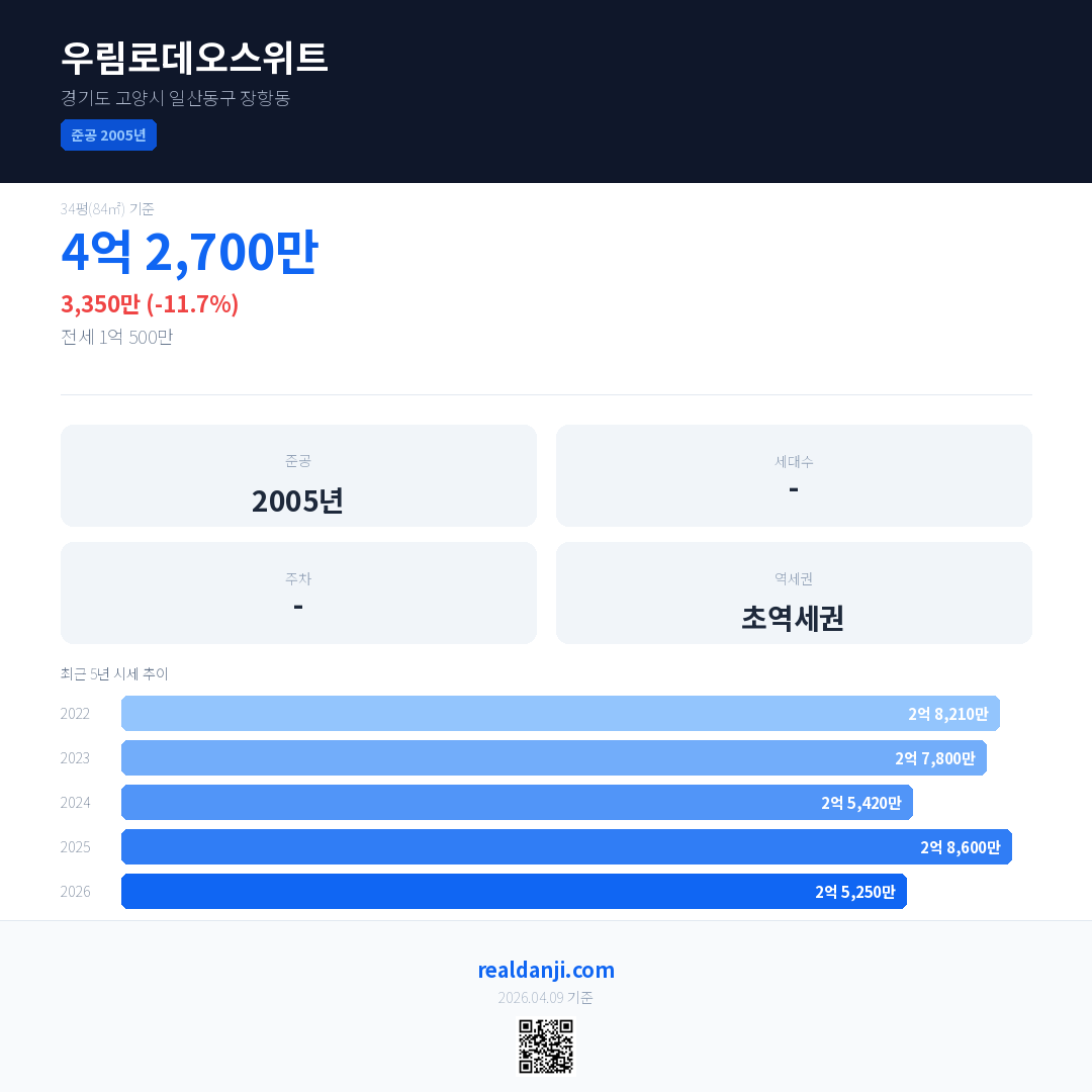 우림로데오스위트 최근 거래가는 4억 2,700만입니다. (2026-03)