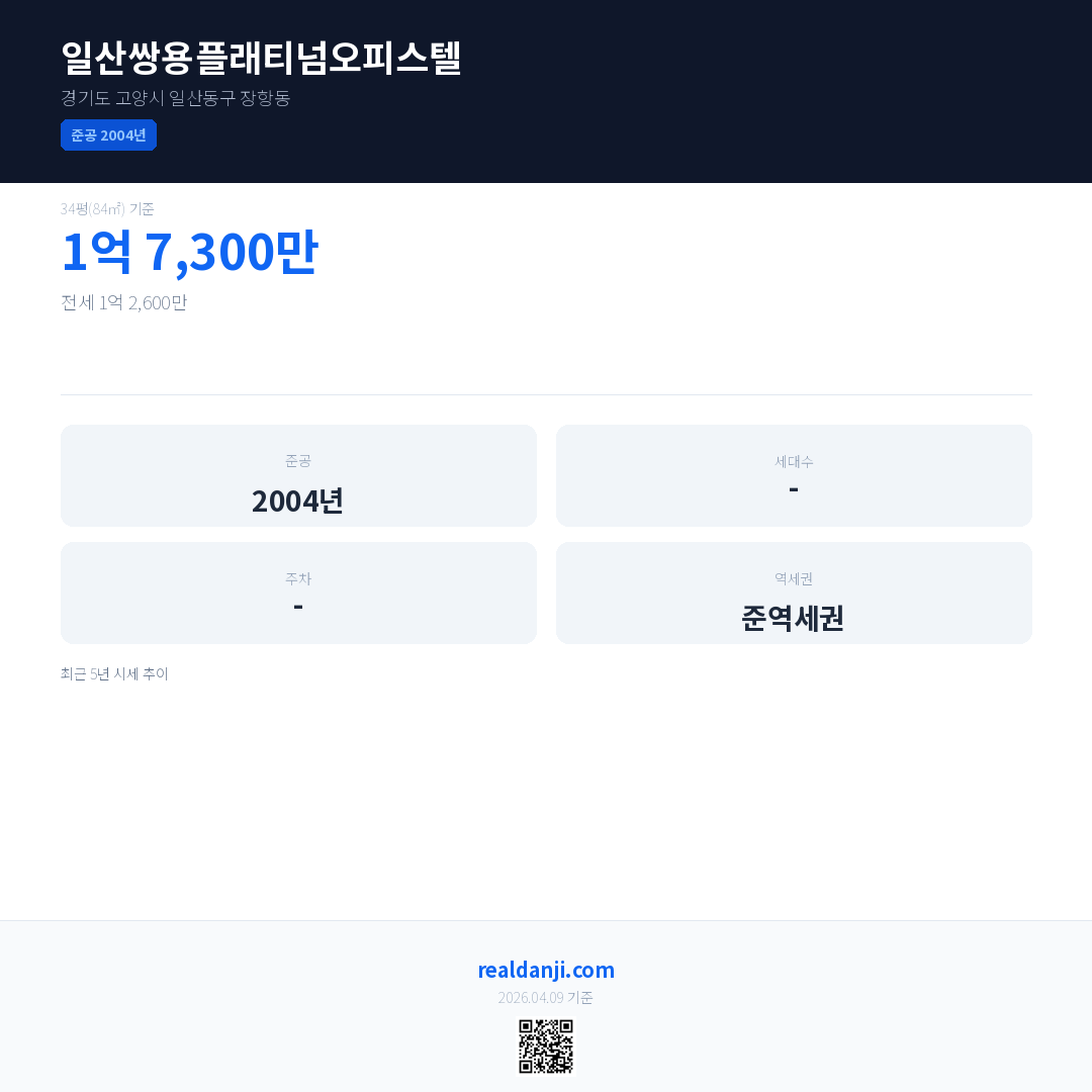 일산쌍용플래티넘오피스텔 최근 거래가는 1억 7,300만입니다. (2026-01)