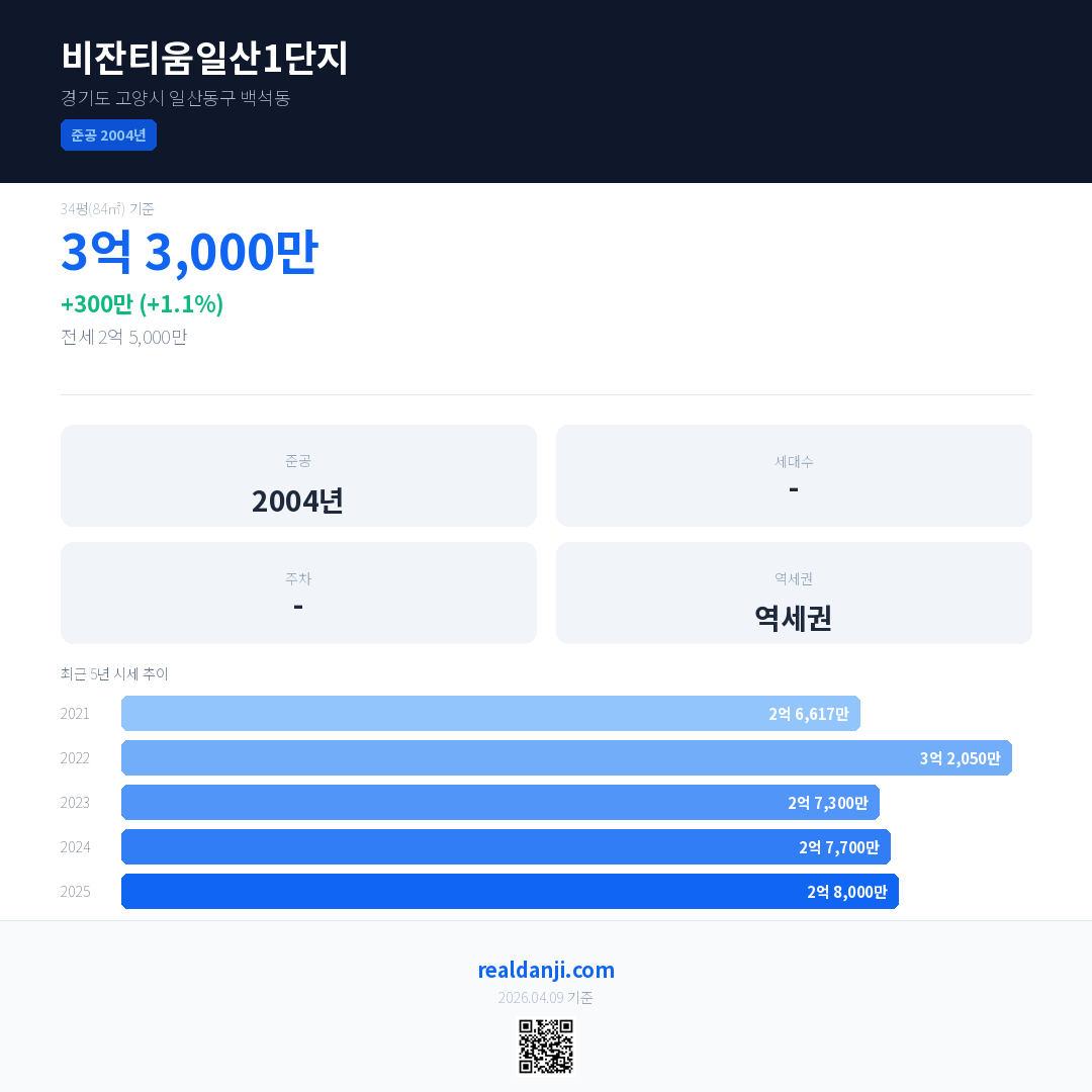 비잔티움일산1단지 최근 거래가는 3억 3,000만입니다. (2026-01)