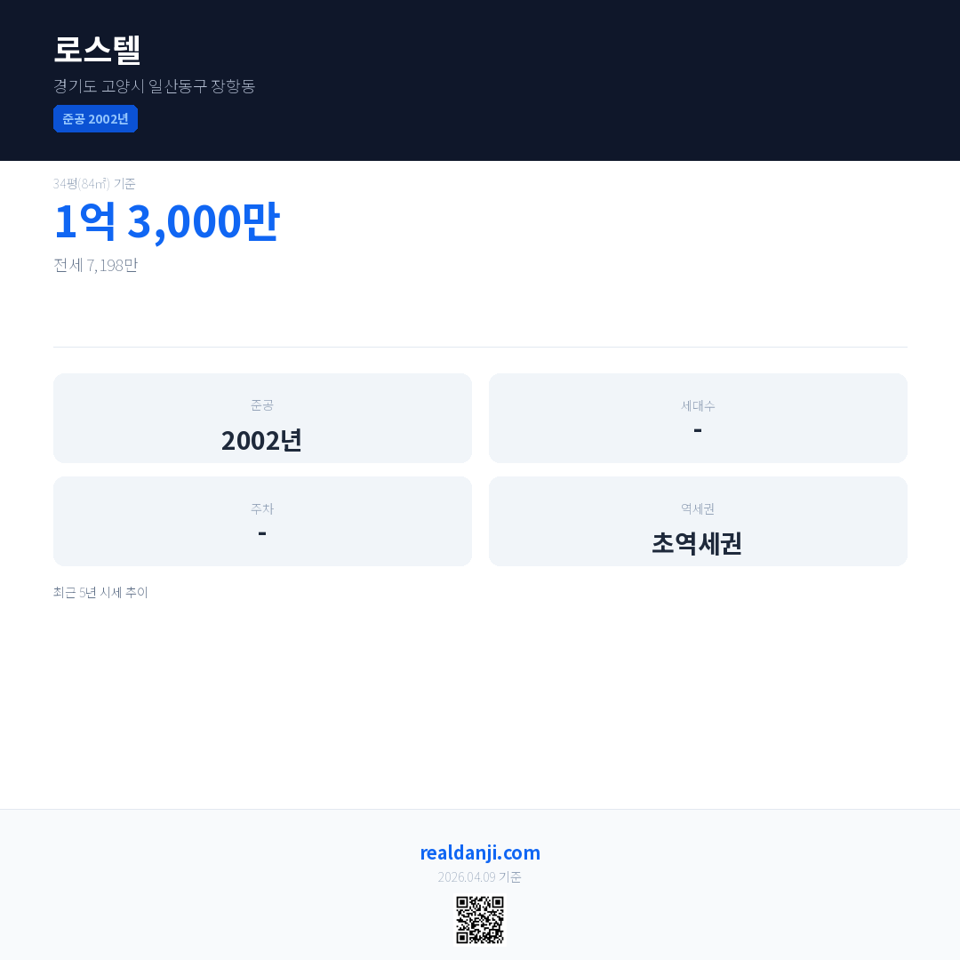 로스텔 최근 거래가는 1억 3,000만입니다. (2026-03)