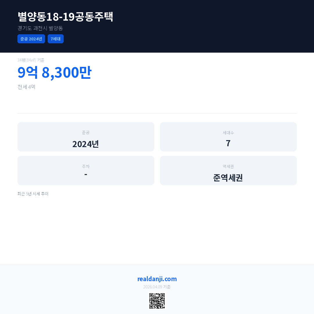 별양동18-19공동주택 최근 거래가는 9억 8,300만입니다. (2026-03)
