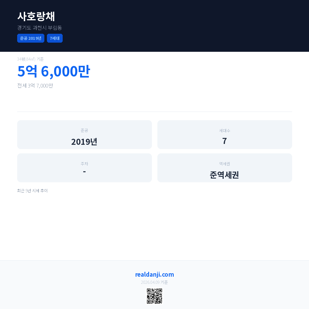 사호랑채은(는) 2019년에 준공되었으며, 현재 7년차입니다. 총 7세대 규모입니다.