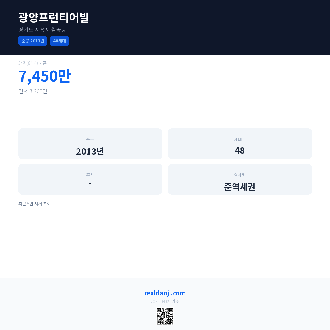 광양프런티어빌 최근 거래가는 7,450만입니다. (2025-08)
