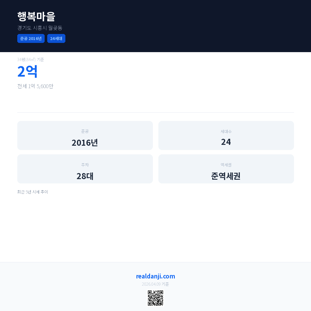 행복마을은(는) 2016년에 준공되었으며, 현재 10년차입니다. 총 24세대 규모입니다.