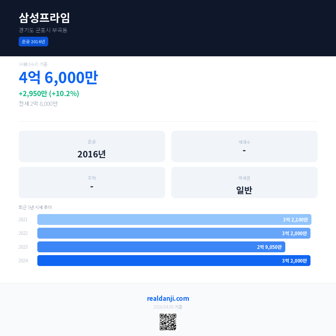 삼성프라임 최근 거래가는 4억 6,000만입니다. (2024-12)