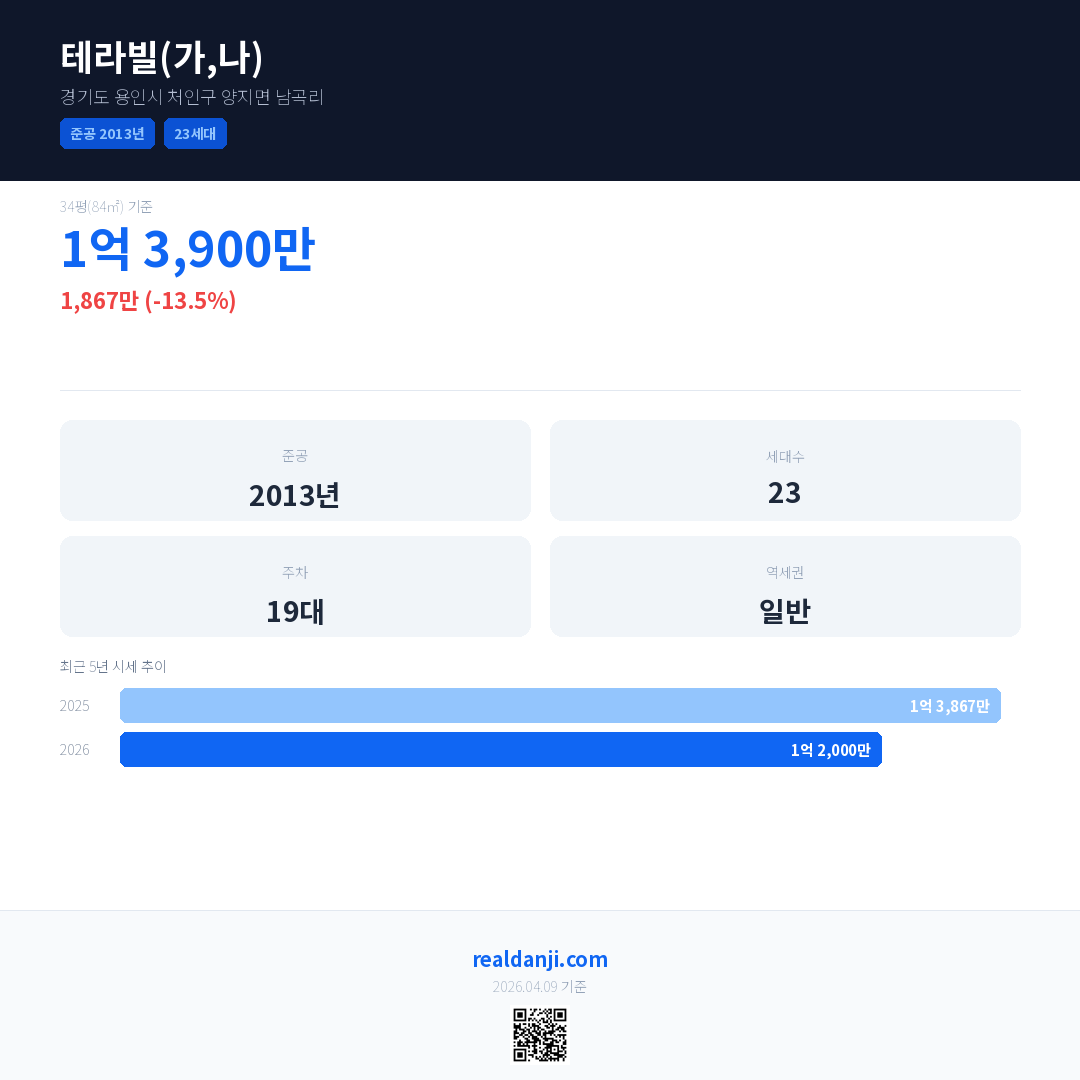 테라빌(가,나) 최근 거래가는 1억 3,900만입니다. (2026-02)