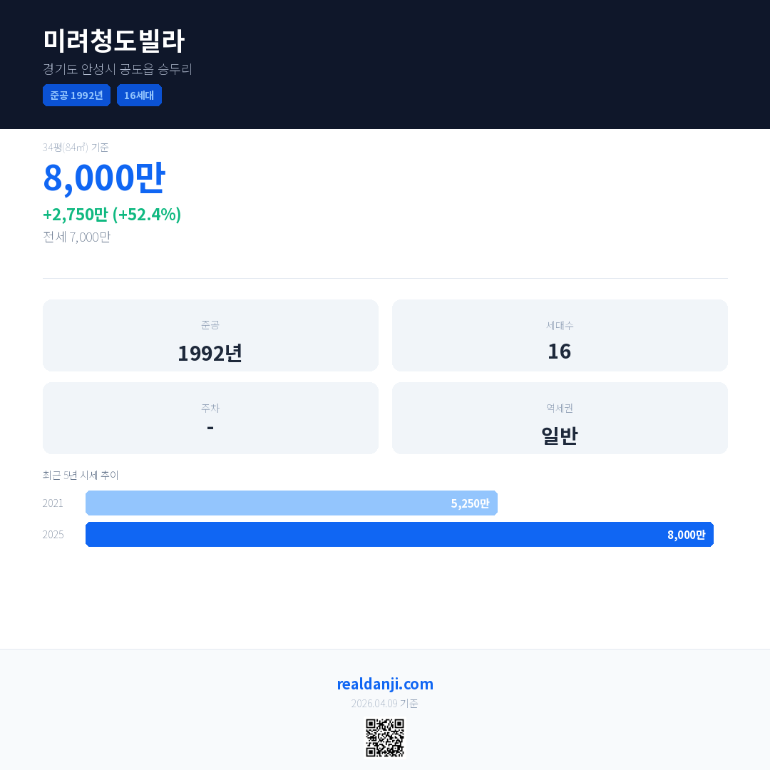 미려청도빌라 최근 거래가는 8,000만입니다. (2025-04)