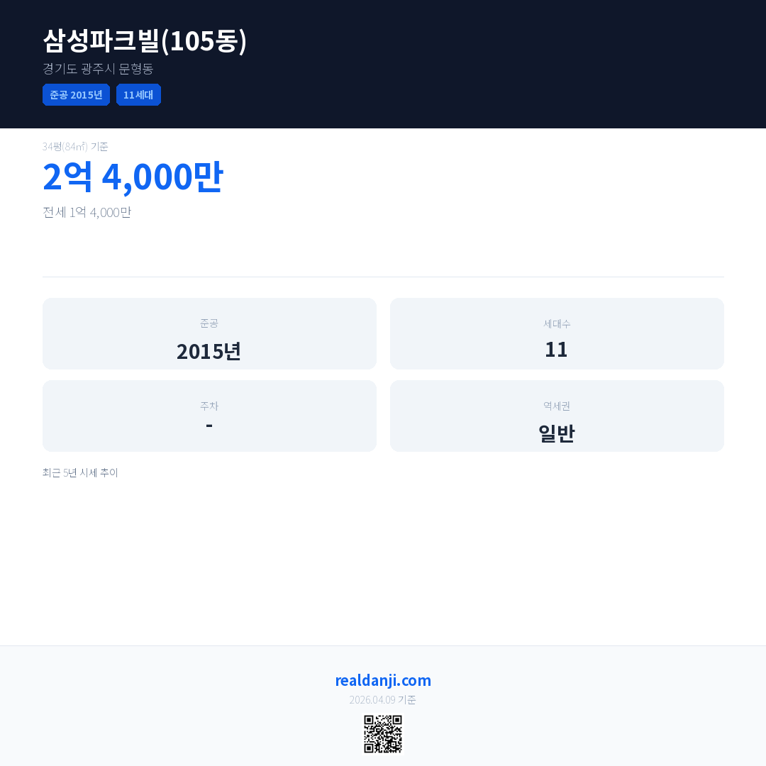 삼성파크빌(105동) 최근 거래가는 2억 4,000만입니다. (2026-03)