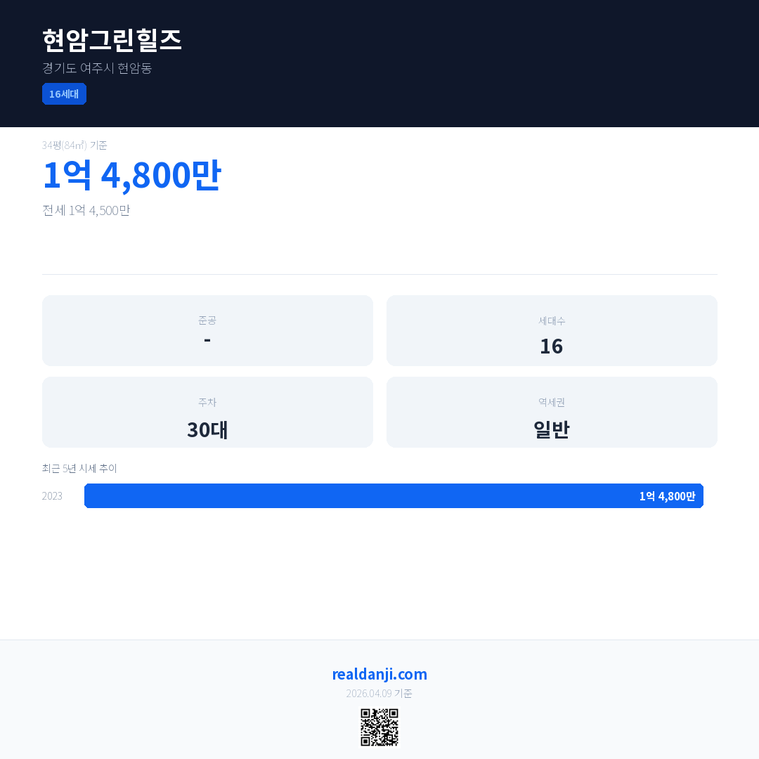현암그린힐즈 최근 거래가는 1억 8,600만입니다. (2023-09)