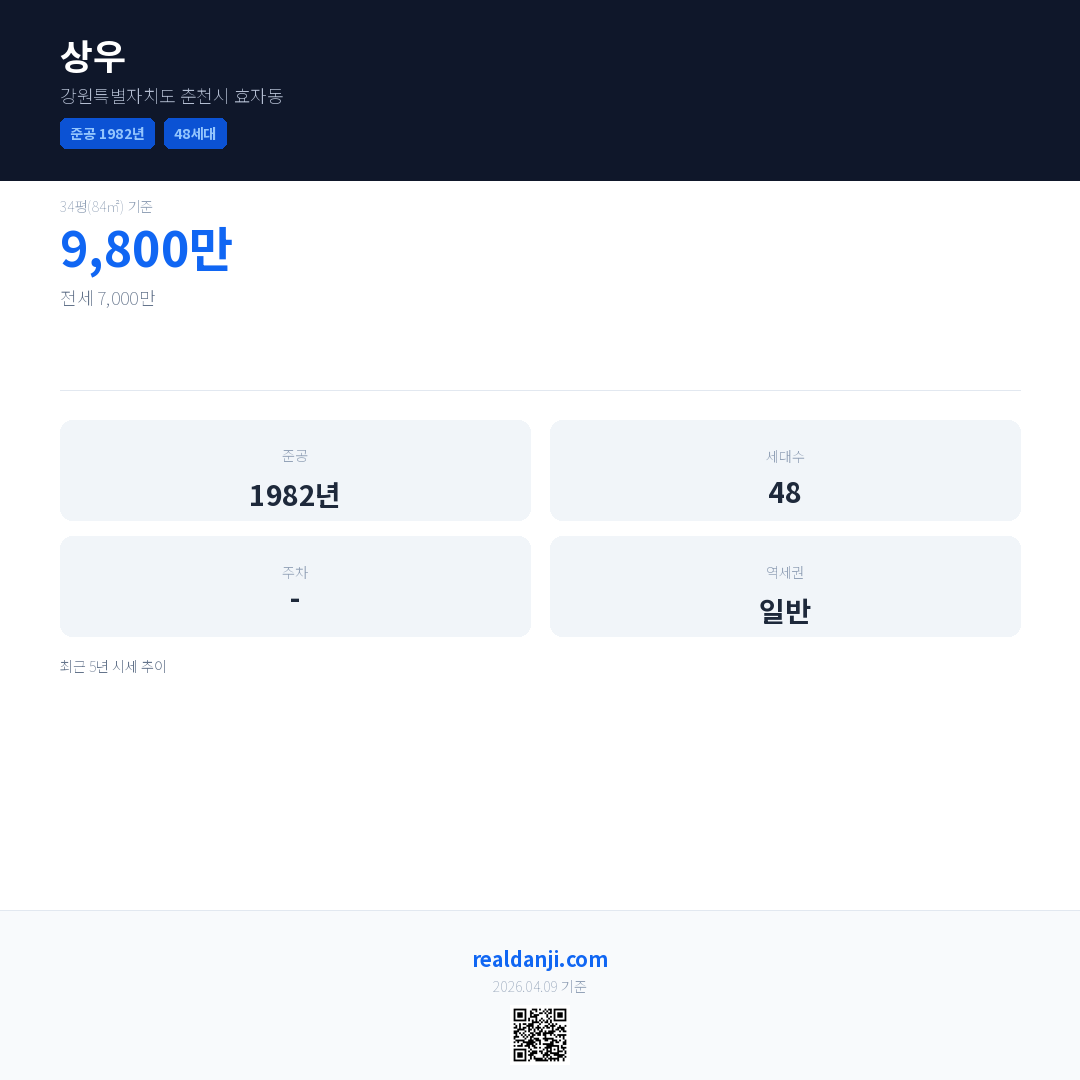 상우 최근 거래가는 9,800만입니다. (2026-02)