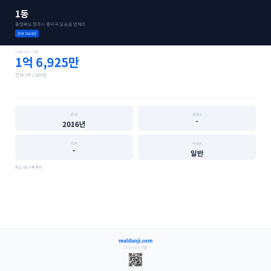 1동 최근 거래가는 1억 6,925만입니다. (2026-02)