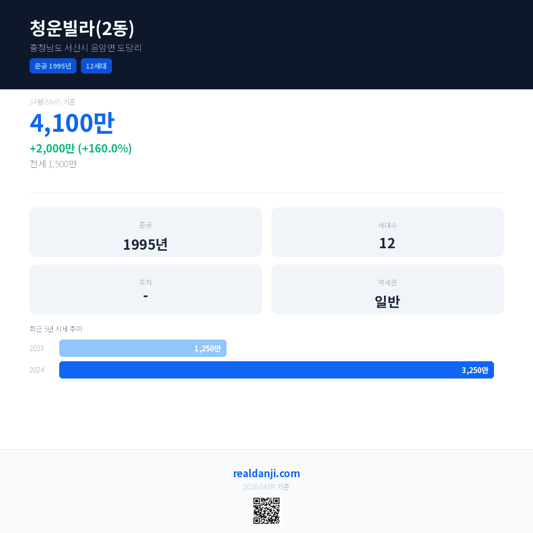 청운빌라(2동) 최근 거래가는 4,100만입니다. (2026-03)