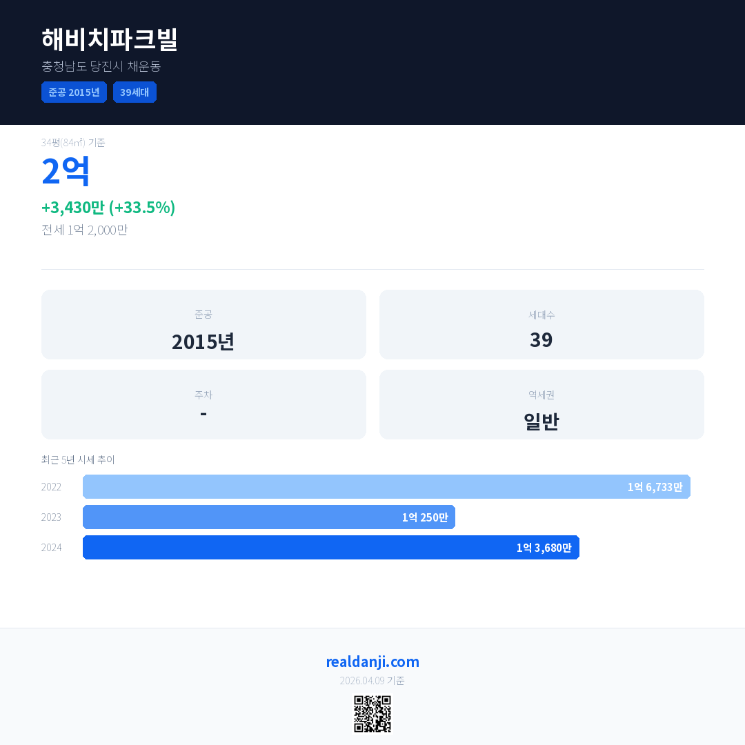 해비치파크빌 최근 거래가는 2억입니다. (2024-12)