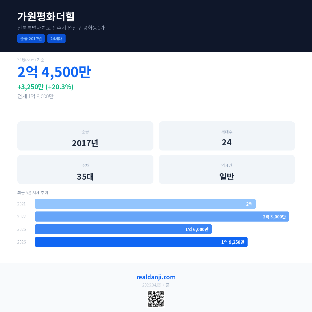가원평화더힐 최근 거래가는 2억 4,500만입니다. (2026-02)