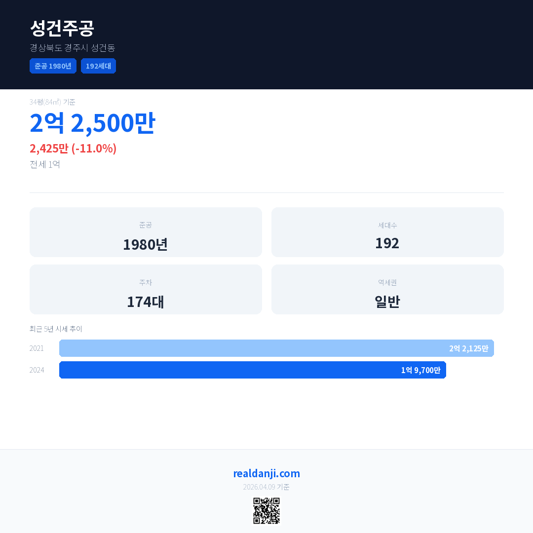 성건주공 최근 거래가는 2억 2,500만입니다. (2025-11)