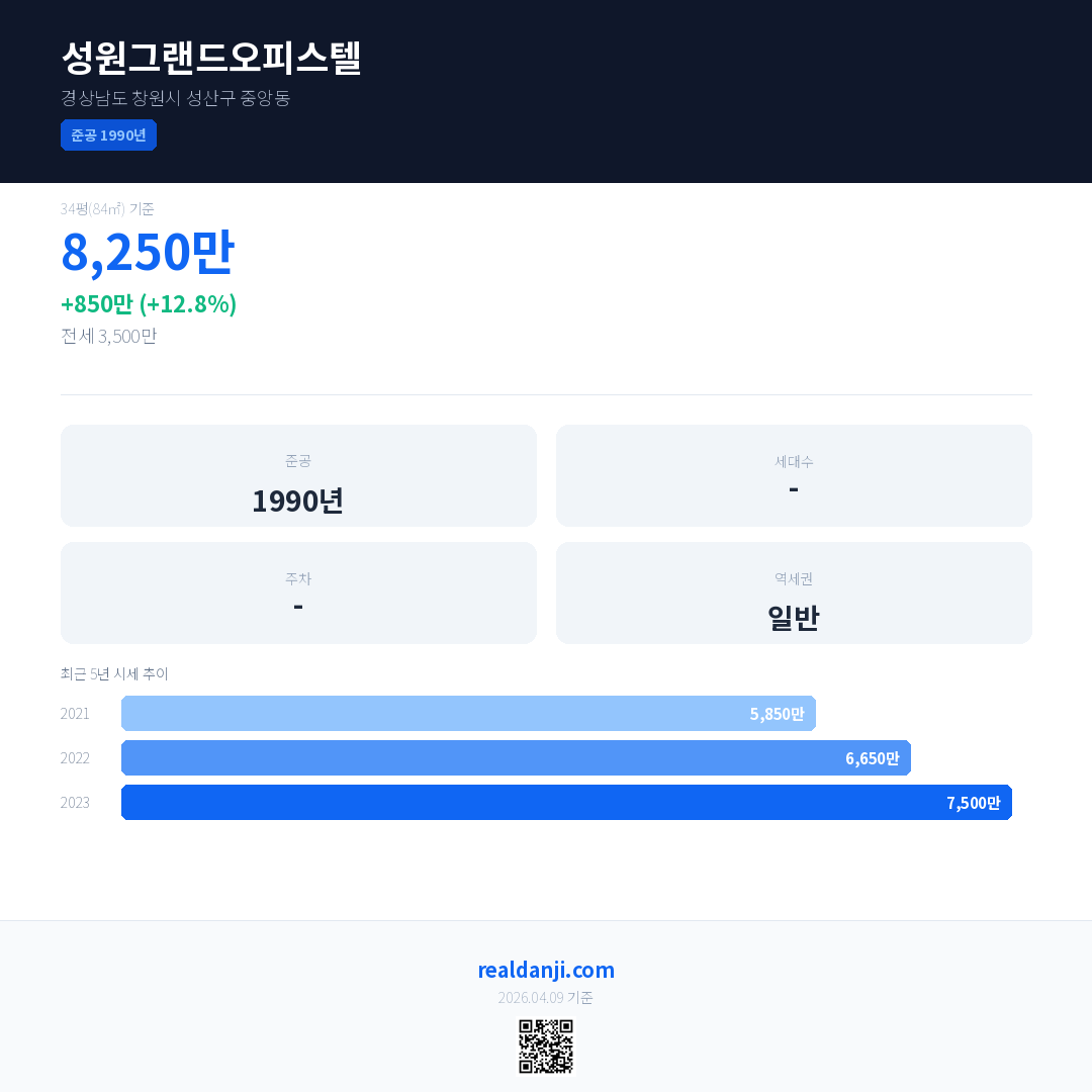 성원그랜드오피스텔 최근 거래가는 8,250만입니다. (2026-02)