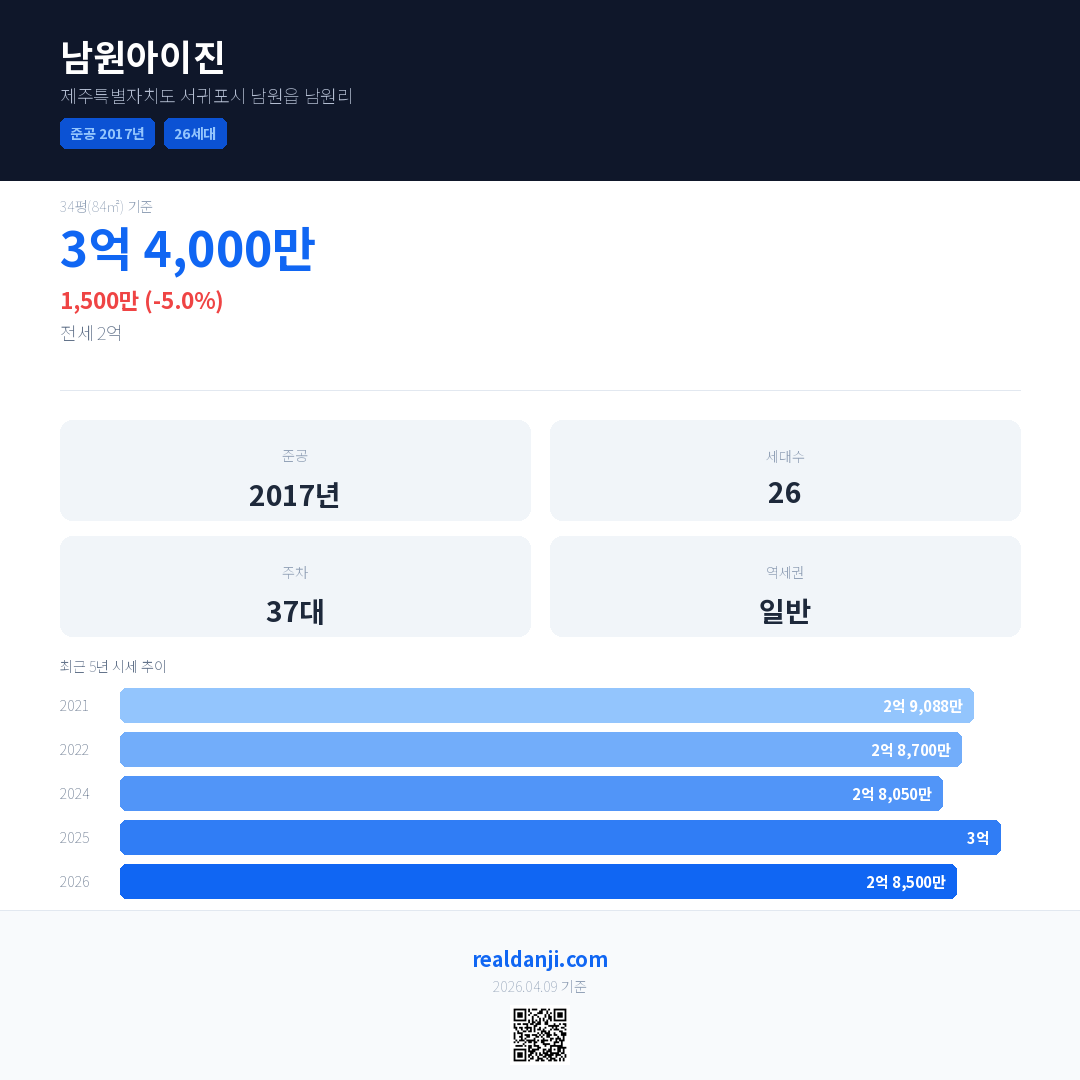 남원아이진 최근 거래가는 2억 8,500만입니다. (2026-04)
