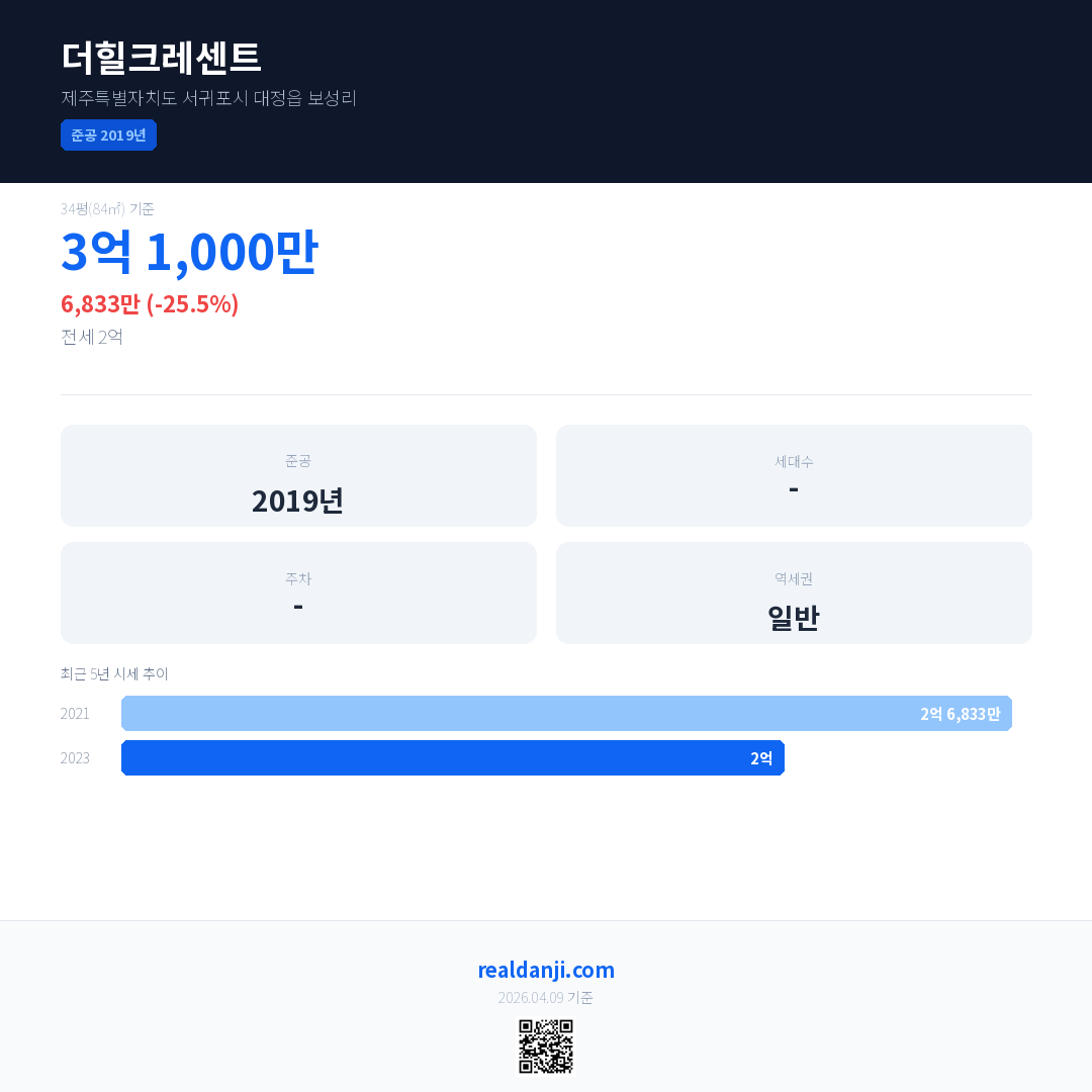 더힐크레센트 최근 거래가는 3억 1,000만입니다. (2023-09)