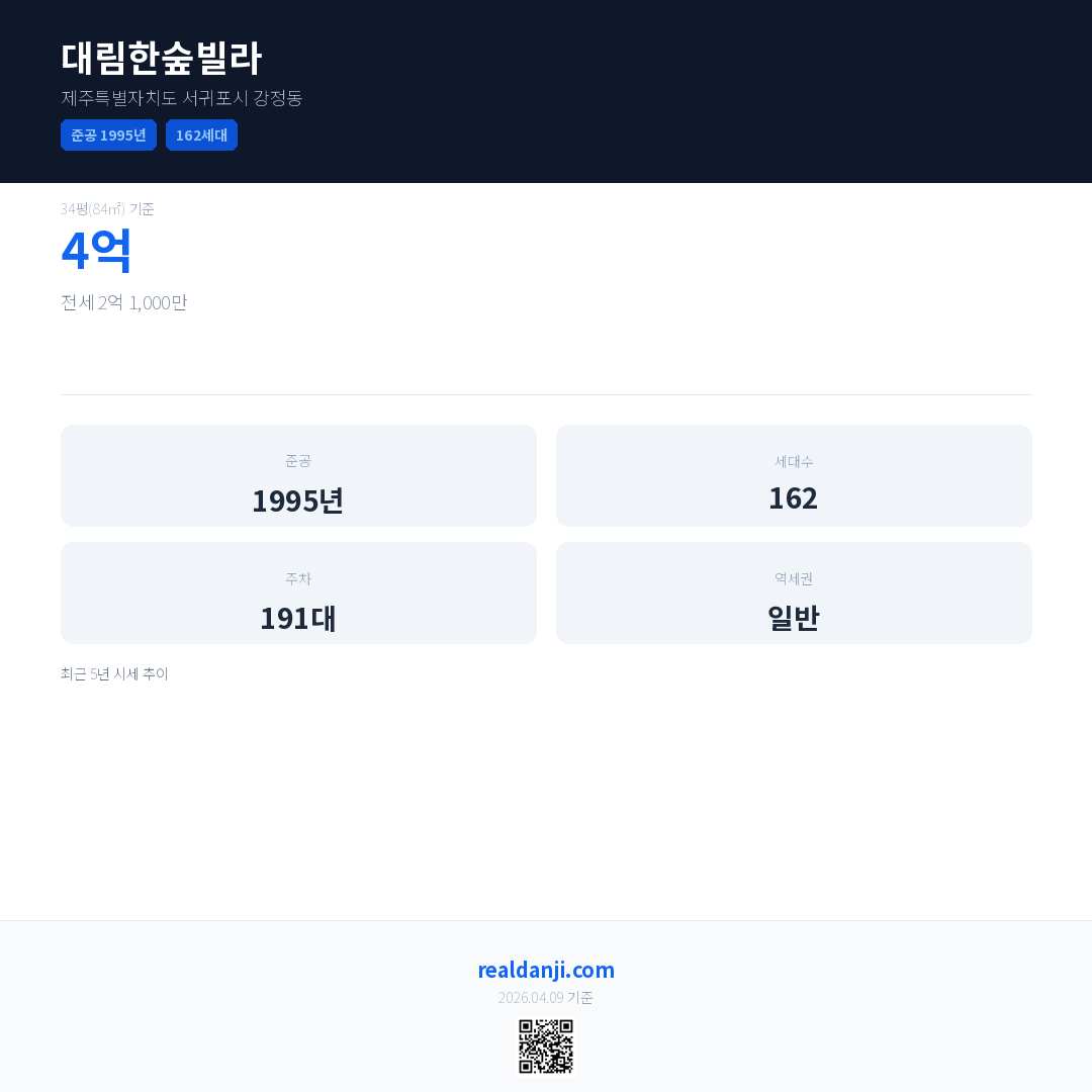 대림한숲빌라 최근 거래가는 4억입니다. (2025-12)