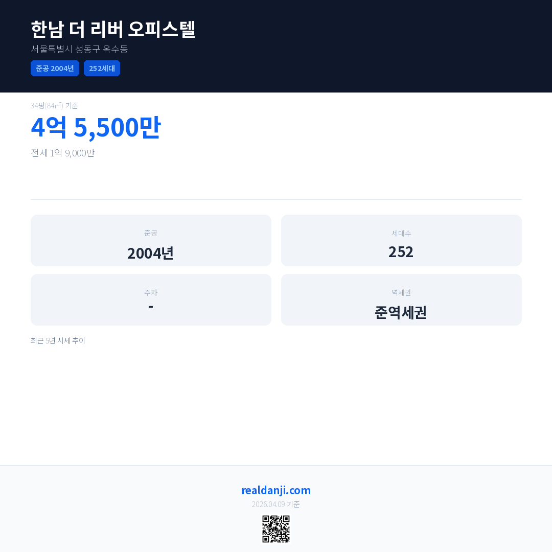한남 더 리버 오피스텔 최근 거래가는 4억 5,500만입니다. (2026-01)
